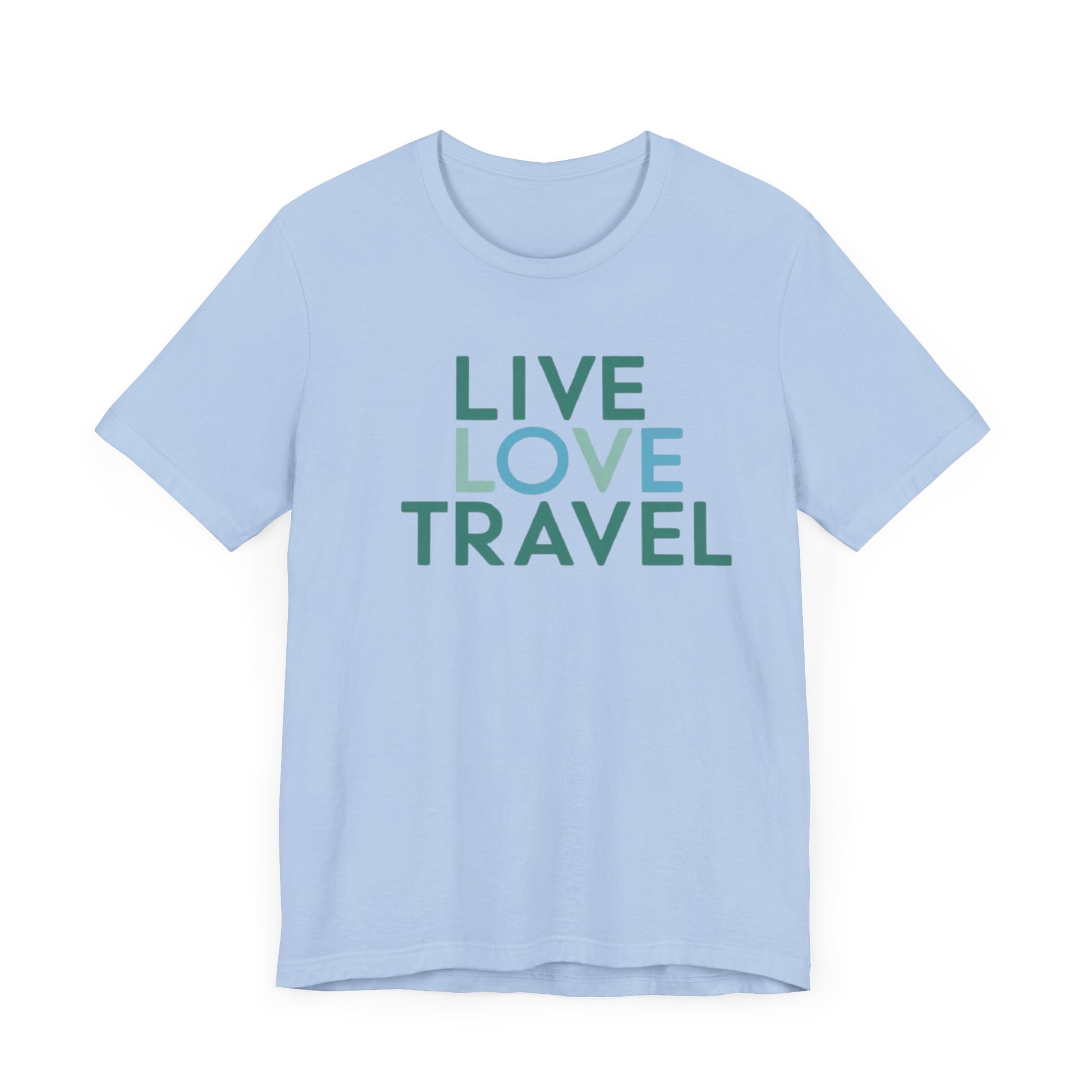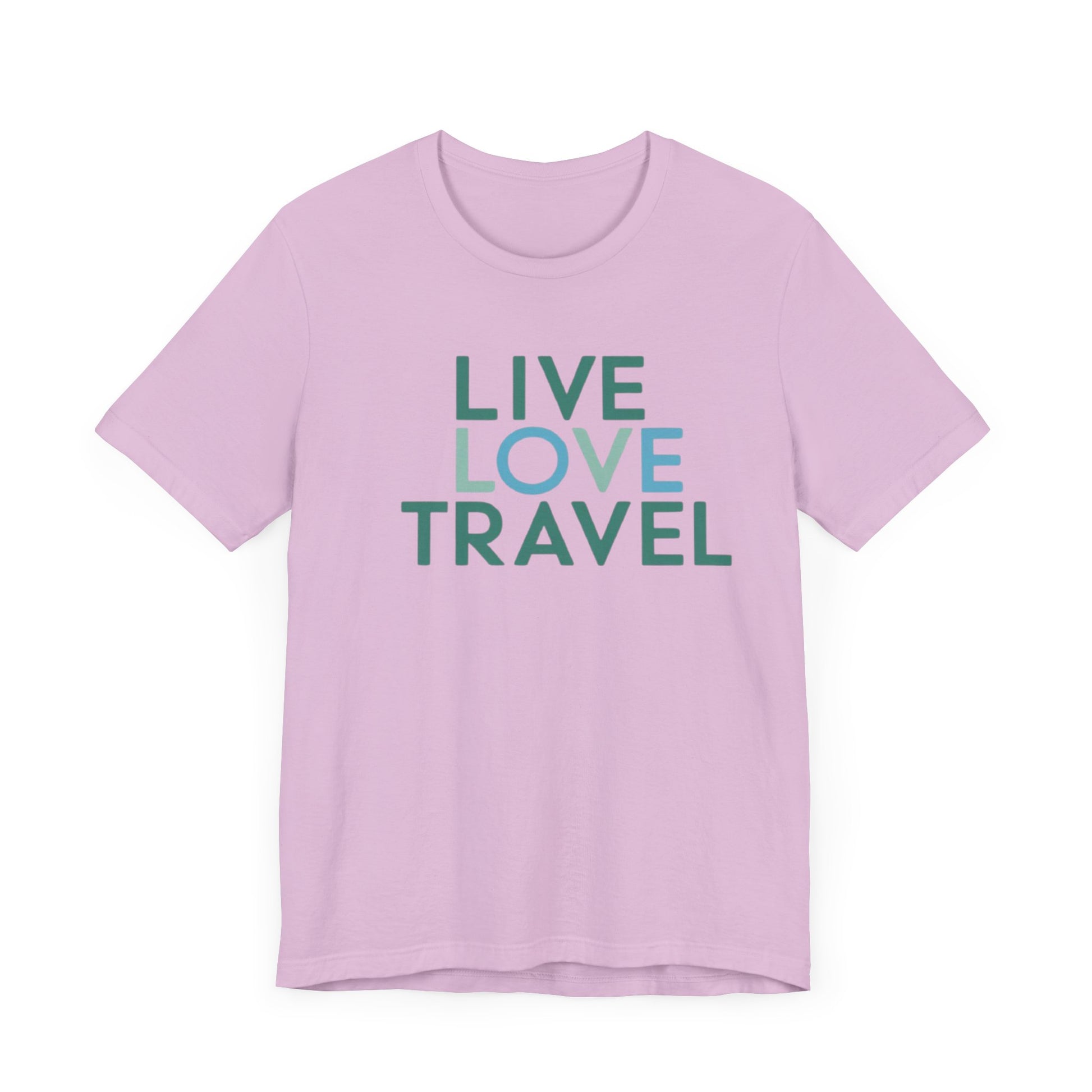 Introducing the perfect Unisex Jersey Short Sleeve Tee for those who embrace a vibrant lifestyle! This lightweight shirt features a bold 'LIVE LOVE TRAVEL' graphic, making it an ideal choice for travel enthusiasts and dreamers alike. The casual style effortlessly transitions from beach outings to city strolls, giving you that relaxed vibe wherever you go. It's great for everyday wear, festivals, or as a thoughtful gift for friends or family during birthdays, graduations, or even just because! Celebrate life’s adventures with this tee that captures your spirit and passion for exploration.